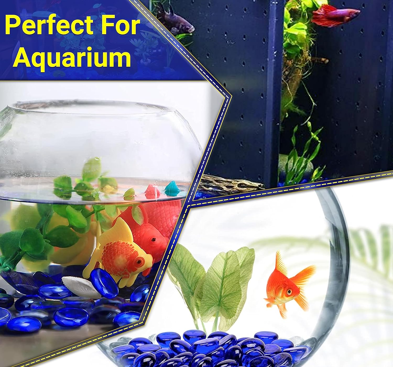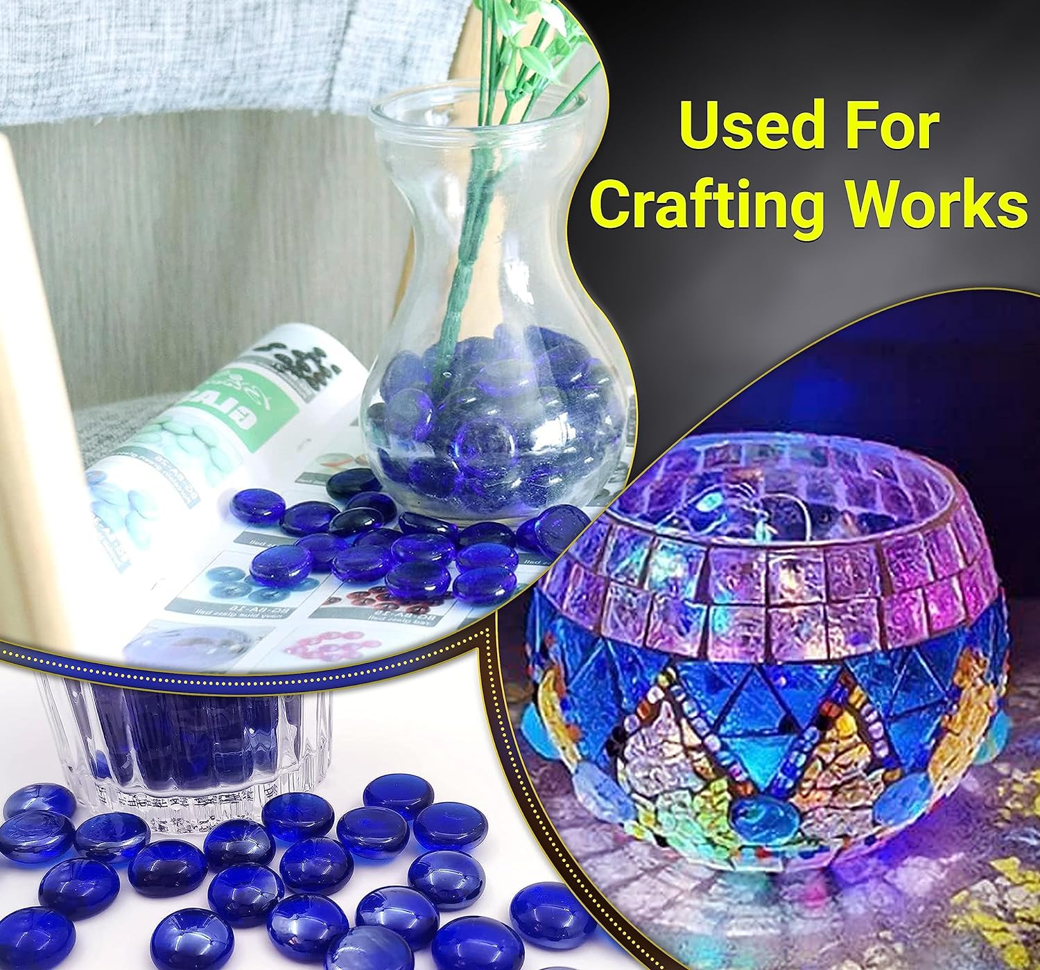Versatile Use: These glass pebbles can be used for a wide range of decorative purposes, such as enhancing the visual appeal of fish tanks, aquariums, vases, plant pots, gardens, and home decor. Their bright Mixed color adds a pop of vibrancy to any setting.