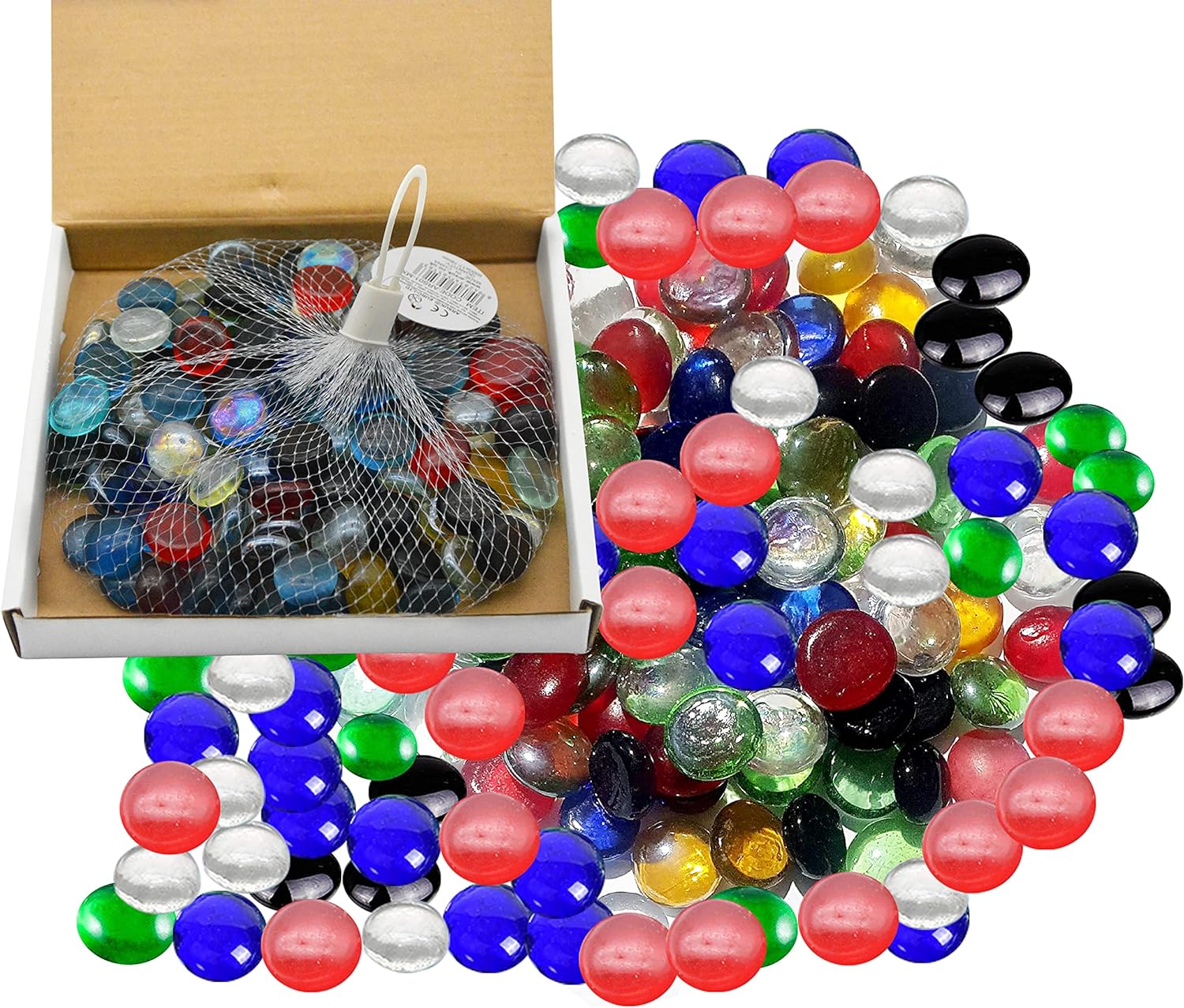Versatile Use: These glass pebbles can be used for a wide range of decorative purposes, such as enhancing the visual appeal of fish tanks, aquariums, vases, plant pots, gardens, and home decor. Their bright Mixed color adds a pop of vibrancy to any setting.