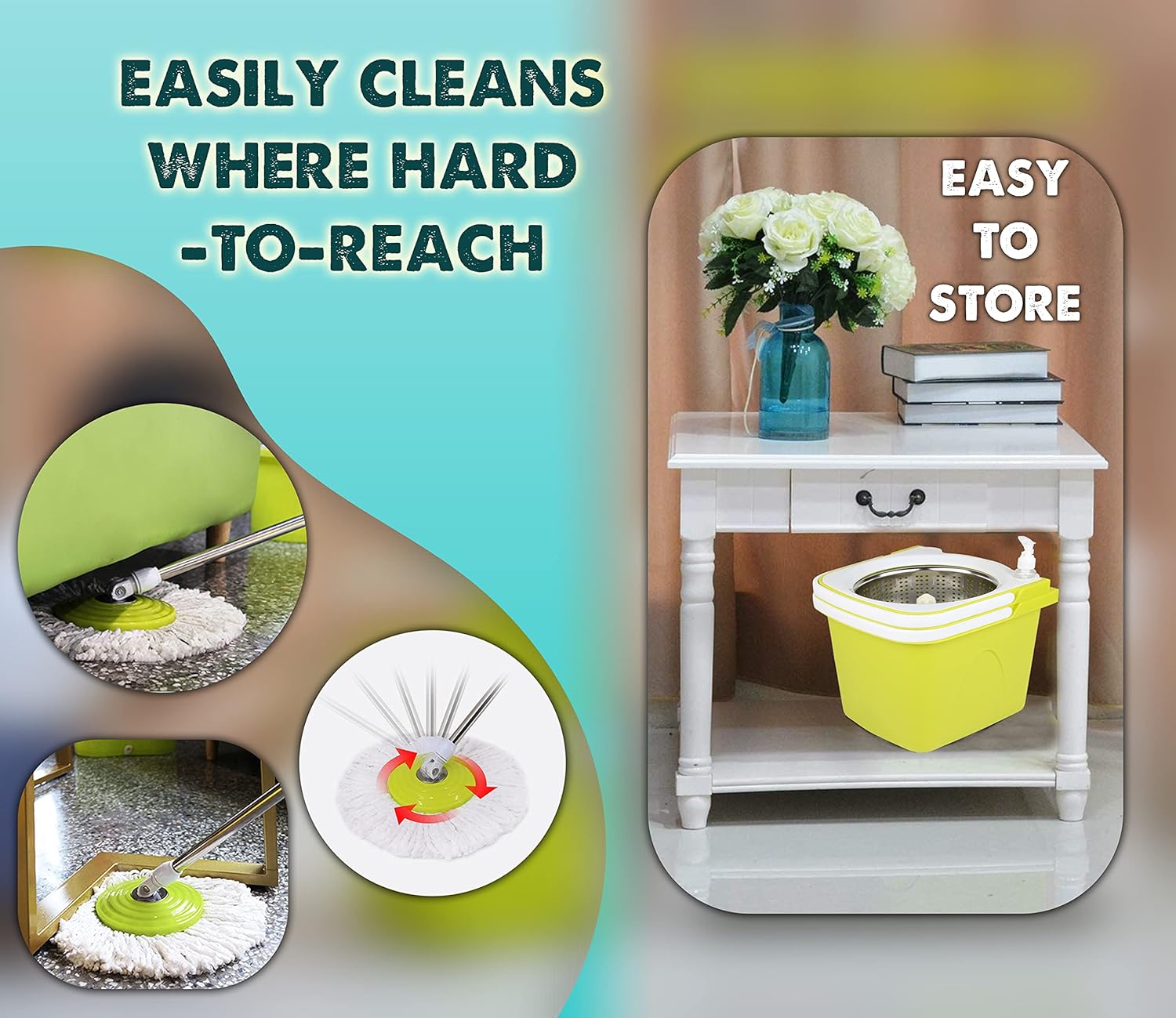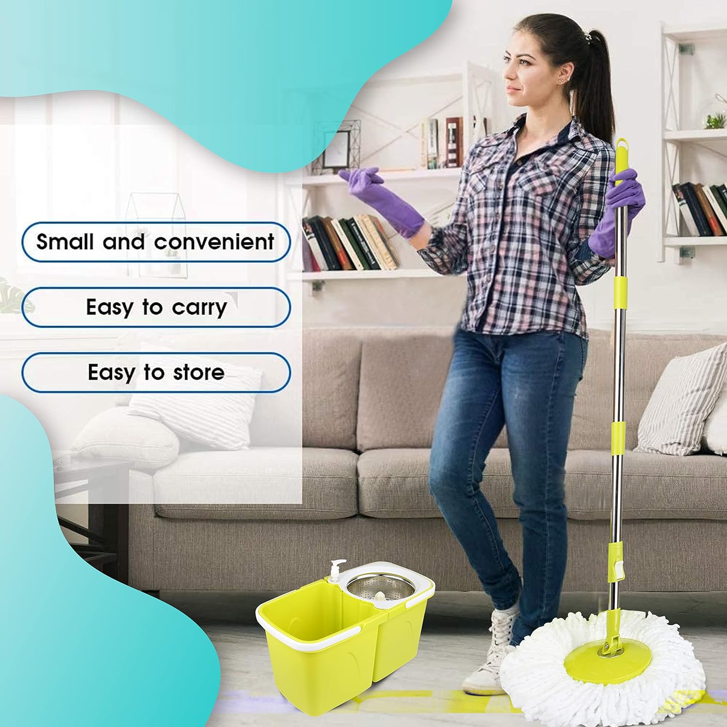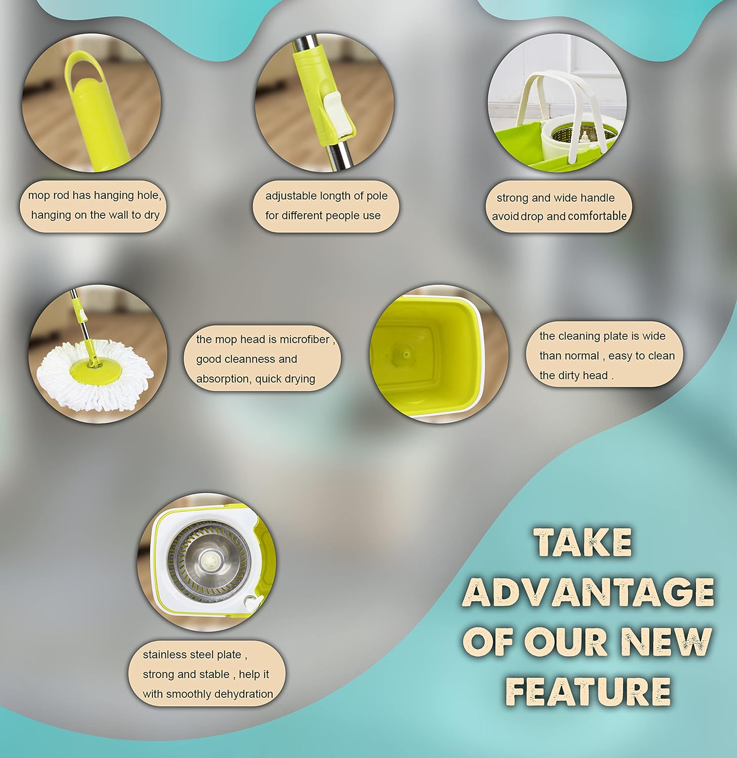 • Spin mop bucket set with wringer is more efficient floor cleaning